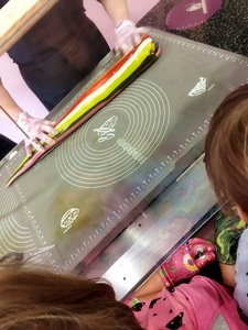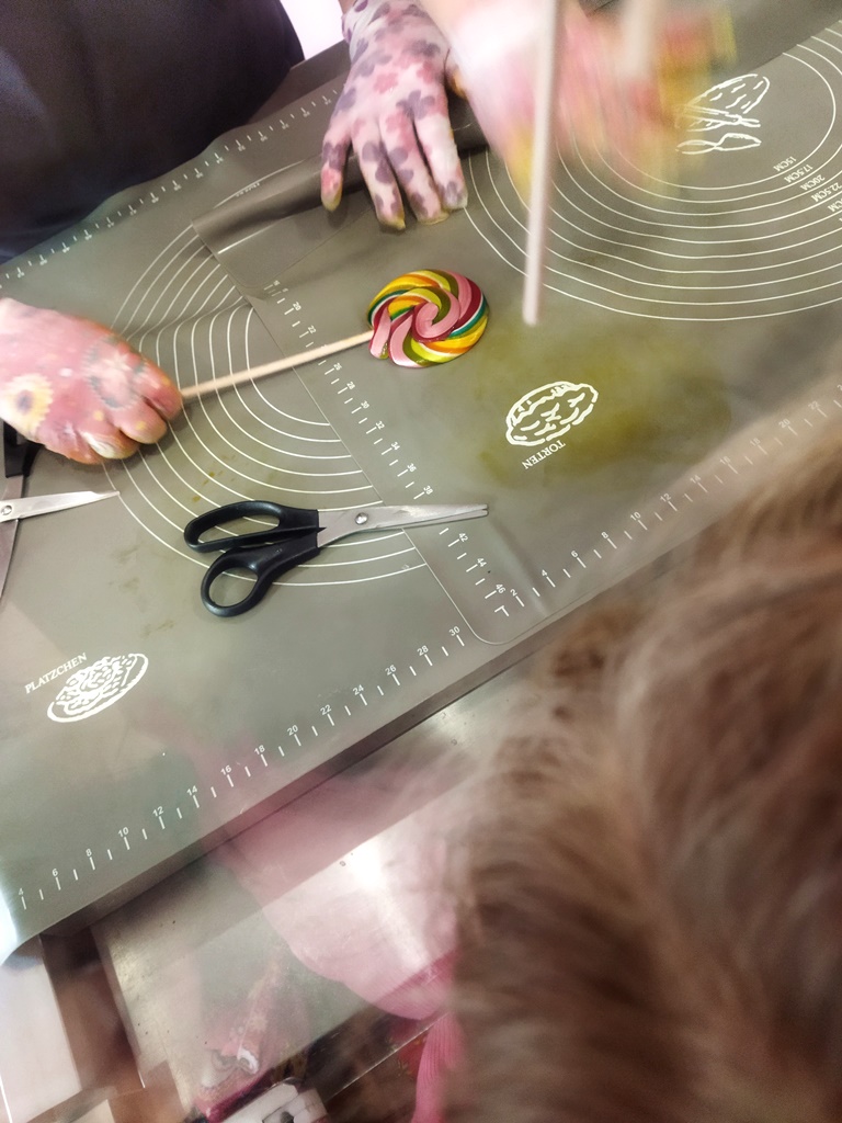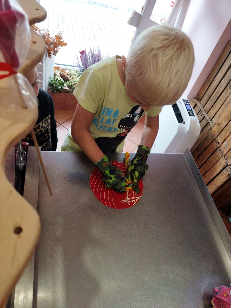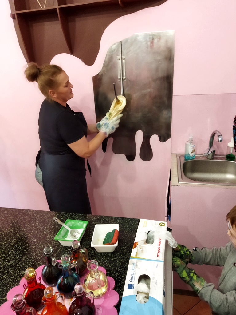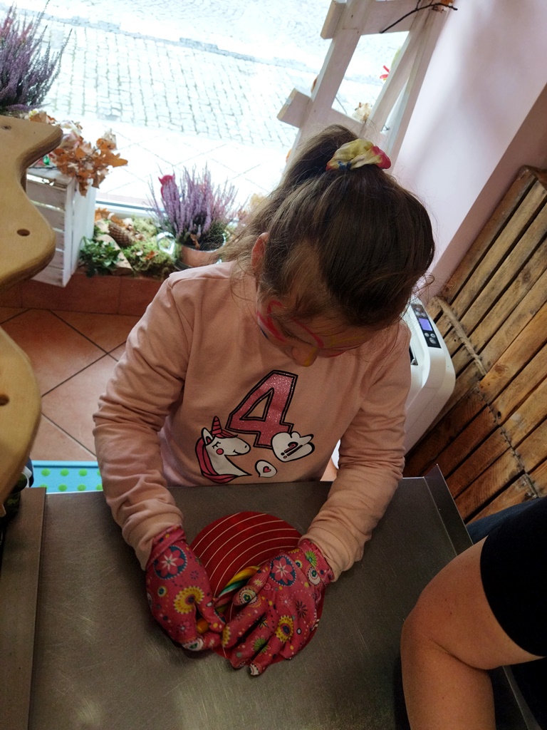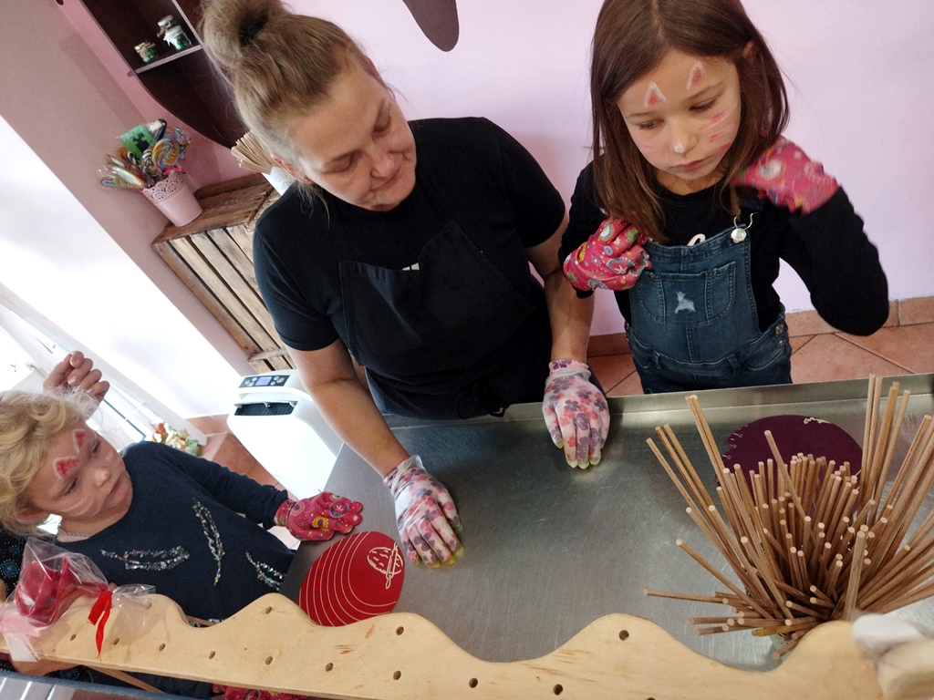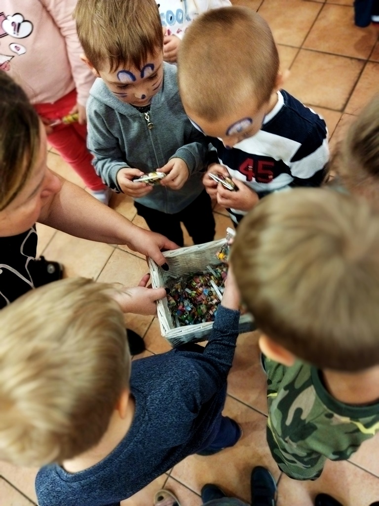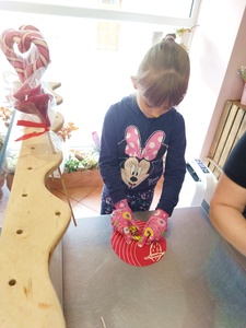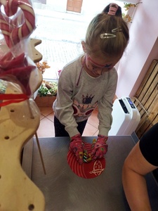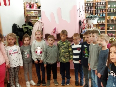 Aby osłodzić ostatnie dni lata i świętować Ogólnopolski Dzień Przedszkolaka dzieci z najstarszej grupy wybrały się do Manufaktury słodyczy „Sama słodycz ”. Mogły tam uczestniczyć w pokazie ręcznego tworzenia małych, kolorowych i słodkich arcydzieł. Przedszkolaki miały okazję zobaczyć niezwykły proces produkcji słodkości od momentu wylania cukru na stół po stworzenie pięknych lizaków i cukierków. Starszaki obserwowały prawdziwe czary, a co najważniejsze przekonały się, że same potrafią czarować. Po wypowiedzeniu zaklęcia: „czary mary, niech się cukier stanie biały” okazało się, że żółta masa stała się białą. Do masy cukrowej były dodawane różne kolory, między innymi czerwony sok z buraków, pomarańczowy sok z marchewki oraz żółty barwnik którym była kurkuma. Każde dziecko wykonało także własnego lizaka. Przedszkolaki otrzymały słodkie prezenty, które zabrały do swoich domów. Celem wycieczki było wzbogacanie przeżyć dzieci, rozwijanie ich zainteresowań i zaspokajanie dziecięcej ciekawości.