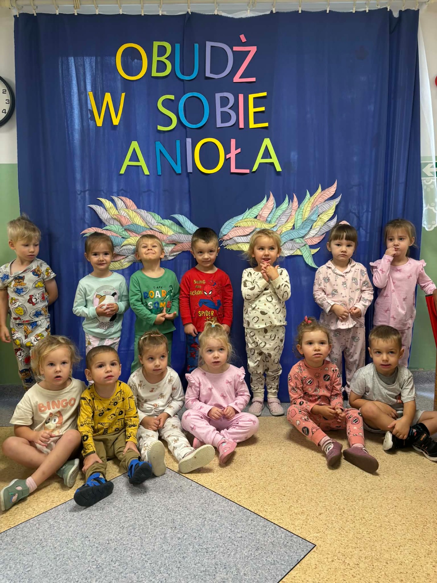 15 października 2025 r. w naszym przedszkolu odbył się Dzień Piżamy. Tego dnia wszystkie dzieci przyszły ubrane w swoje ulubione piżamki, spędzając czas w radosnej i przytulnej atmosferze. Wydarzenie to było częścią ogólnopolskiej akcji charytatywnej „Dzień Piżamy – obudź w sobie Anioła”, organizowanej przez Fundację Gdy Liczy się Czas. Jej celem jest okazanie solidarności i wsparcia dzieciom chorym onkologicznie, które na co dzień przebywają w szpitalach w piżamach. W naszym przedszkolu dzieci z zaangażowaniem włączyły się w akcję, zakładając piżamy, aby symbolicznie towarzyszyć małym pacjentom w ich trudnej codzienności. To był wyjątkowy dzień pełen empatii, dobra i kolorowych piżamek w naszym przedszkolu.