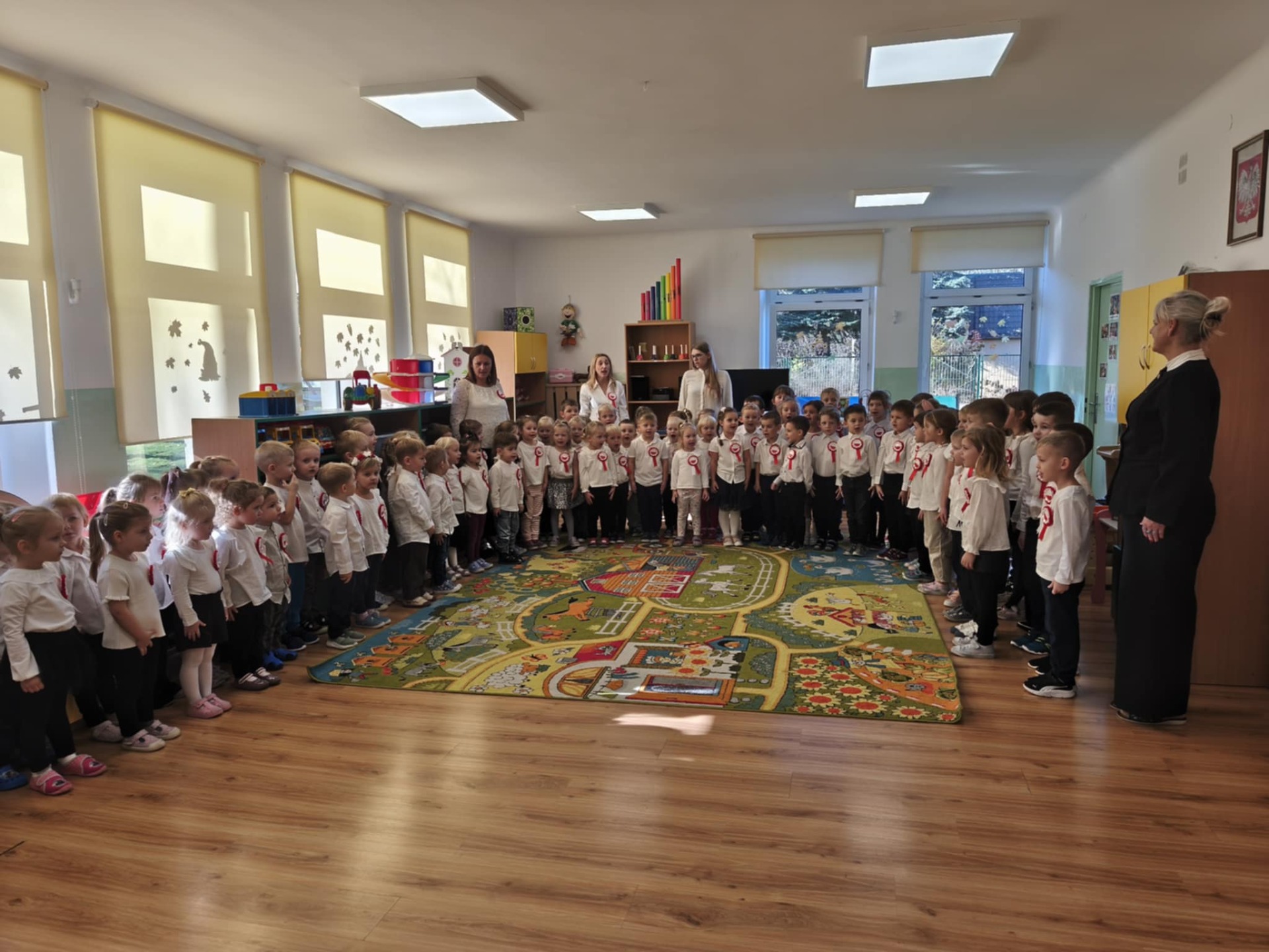 W piątek 7 listopada 2025 roku, o symbolicznej godzinie 11:11, dzieci ubrane w galowe stroje zebrały się by wspólnie odśpiewać „Mazurka Dąbrowskiego”. Nasze Przedszkole z wielkim zaangażowaniem włączyło się do ogólnopolskiej akcji „Szkoła do hymnu” zorganizowanej przez Ministerstwo Edukacji Narodowej, która tradycyjnie odbywa się przed Narodowym Świętem Niepodległości.