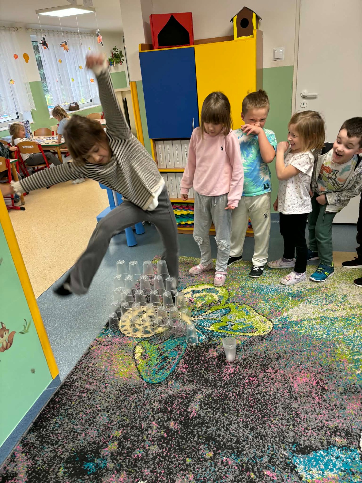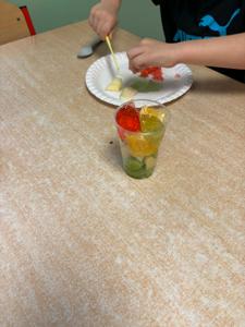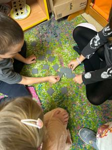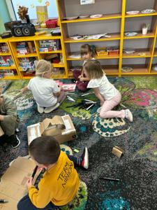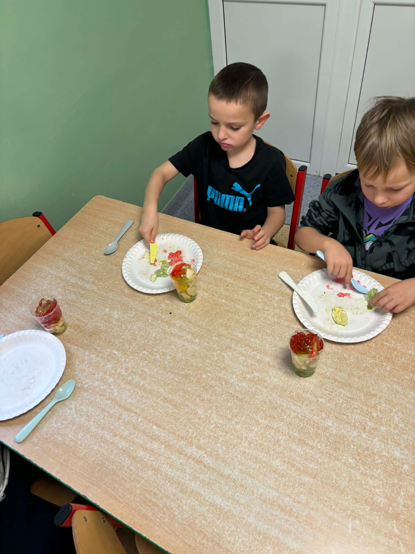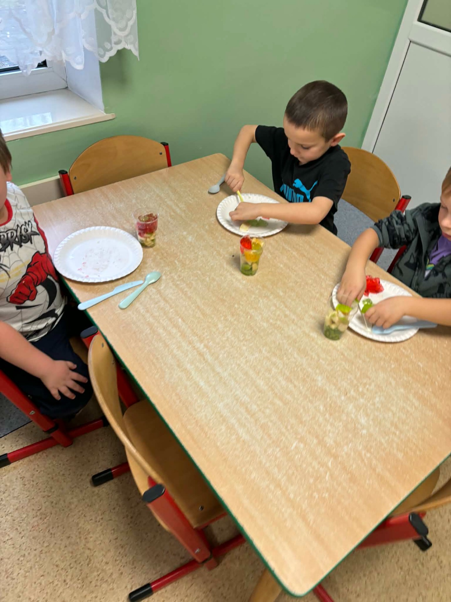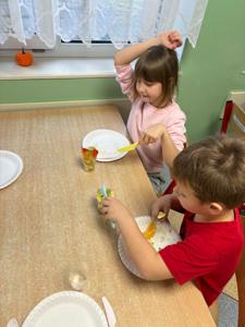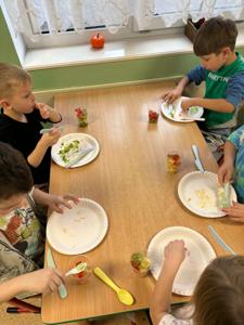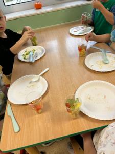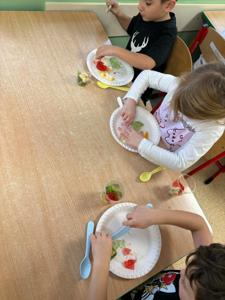 W dniach 17–21 listopada dzieci z grupy „Motyli” przeżyły niezwykłą przygodę podczas „Tygodnia bez zabawek”. Zamiast tradycyjnych zabawek wykorzystały swoją wyobraźnię oraz różnorodne materiały, tworząc własne gry, konstrukcje i zabawy. Ten czas sprzyjał rozwijaniu kreatywności, samodzielności, współpracy oraz komunikacji między dziećmi. W trakcie tygodnia przedszkolaki miały również okazję sprawdzić się w kuchni, przygotowując kolorowe, owocowe galaretki. Samodzielne krojenie owoców, mieszanie składników i dekorowanie deserów sprawiło im mnóstwo radości. Dzieci z dumą zajadały swoje słodkie, zdrowe dzieła. To był tydzień pełen twórczych pomysłów, nowych doświadczeń i wspaniałej zabawy!