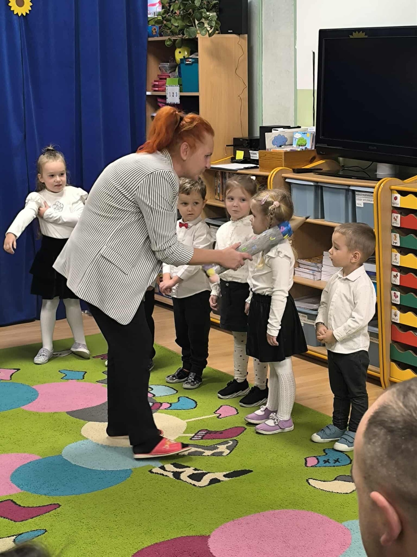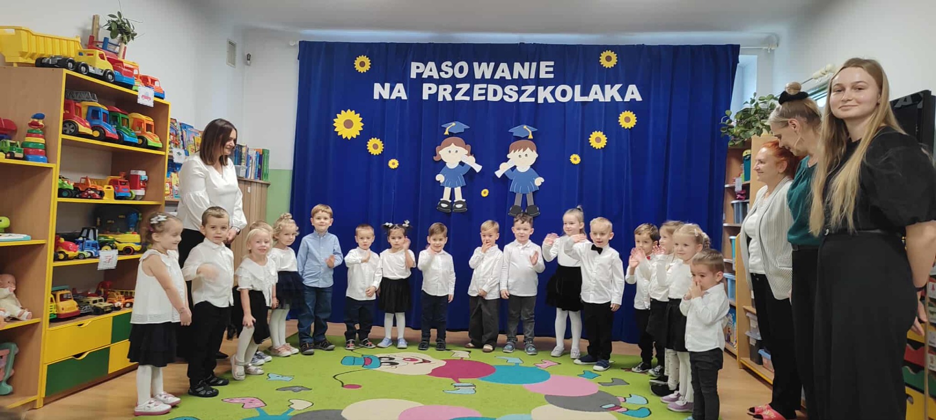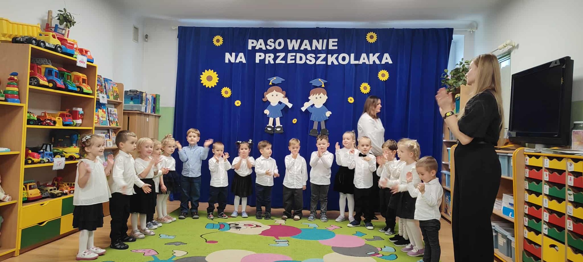 21 listopada 2025 w grupie 3-4 latków obchodziliśmy pierwsze wyjątkowe święto w życiu dzieci „Pasowanie na przedszkolaka”. Jest to bardzo ważne wydarzenie w życiu zarówno dzieci jak i ich rodziców, a także nauczycieli. Uroczystość rozpoczęła się programem artystycznym – nasze „Pszczółki” zaprezentowały piosenki, tańce i wierszyki, które dzielnie ćwiczyły od wielu dni. Mimo lekkiej tremy wszystkie wystąpiły wspaniale. Następnie Pani Dyrektor dokonała uroczystego pasowania symbolicznym ołówkiem, oficjalnie witając dzieci w gronie przedszkolaków. Rodzice obecni na tej uroczystości, mogli podziwiać swoje pociechy w ich prezentacjach artystycznych. Niejednej mamie oraz tacie łza wzruszenia zakręciła się w oku: z dumy, radości, lekkiego niedowierzania, że oto ukochane maleństwo tyle już umie. To był dzień pełen emocji i wrażeń, który na długo pozostanie w pamięci przedszkolaków.